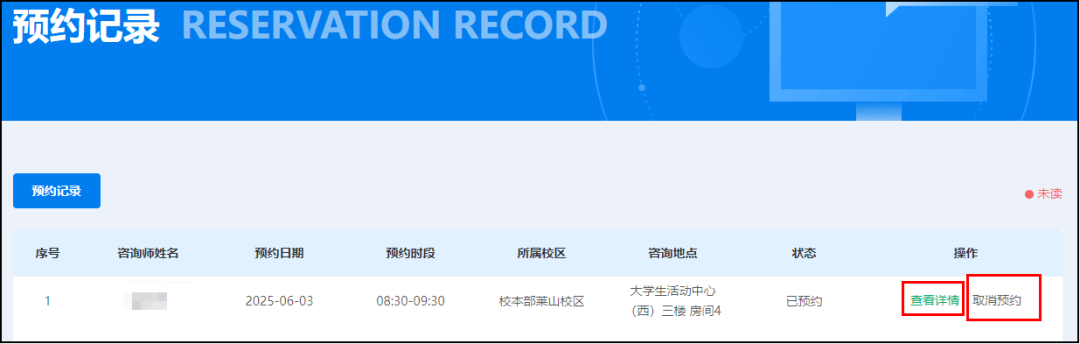②咨询师确认预约后,预约完成,不可再取消咨询。如需取消,可致电心理中心。