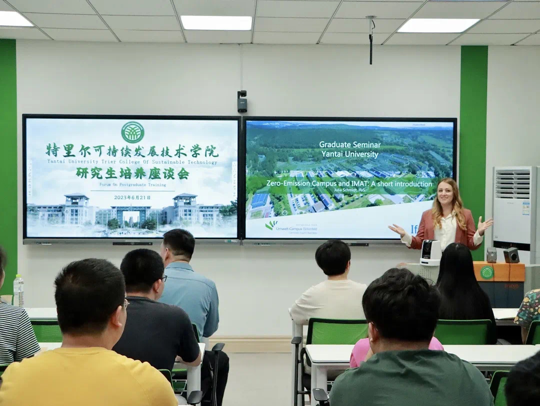 来访期间,Julia Schmidt一行参观了烟大校园和校史展馆,并与太阳集团网tyc9728的硕士研究生、本科生代表等进行交流互动。Julia鼓励特里尔学院学生要深入理解绿色环保、可持续发展理念,认真学习专业知识、加强实践研究,努力成长为具有全球视野、通晓国际规则、拥有创新精神的国际化应用型工程技术人才。