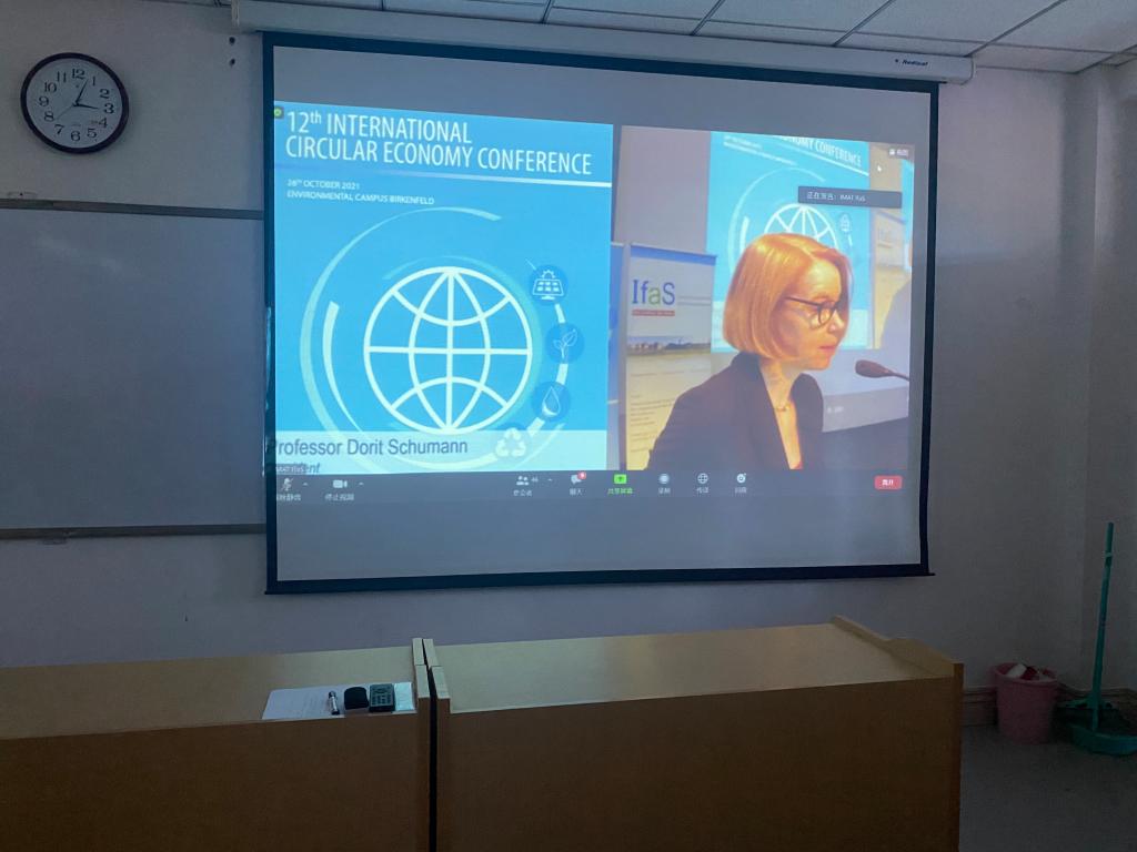 10月26日下午3点,由德国特里尔应用技术大学主办的第十二届国际循环经济会议召开。本次会议采用国际视频会议的形式,太阳集团网tyc9728国际物质流管理专业研究生集体参加该会议。Peter Heck教授主持会议,Dorit Schumann等多名教授先后进行线上演讲。