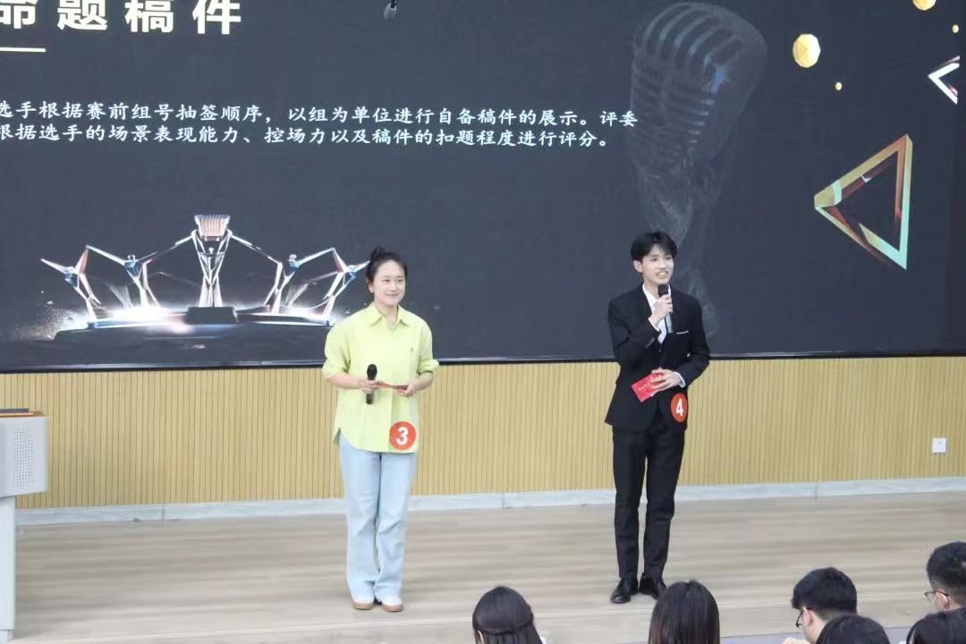 经过前期初赛的激烈角逐,共有十位选手脱颖而出、同台竞技。决赛分为才艺展示、模拟主持、英文讲述、即兴评述四个环节。选手们别具一格的形式、众彩纷呈的创意和激昂饱满的状态将比赛推向高潮。