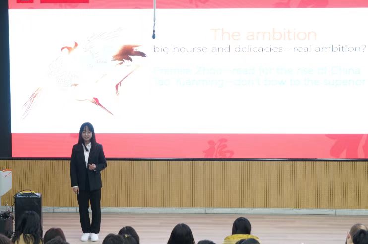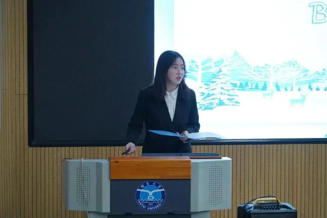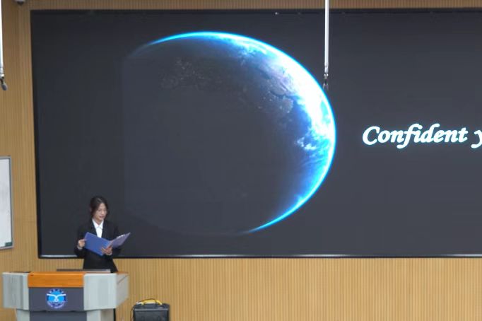 比赛伊始,两位主持人用中英双语的方式介绍了本次活动的流程、评委老师及到场嘉宾。接着,19位参赛选手按初赛排名顺序依次进行演讲。选手们落落大方,或风趣幽默,或慷慨激昂,用流利的英语绘声绘色地讲述着新时代十年的发展成就、中华优秀传统文化的魅力、新时代青年的志气、骨气、底气等话题。他们以今溯古,以古鉴今,尽情展现着青年学子坚定“四个自信”的风采。现场气氛更是十分热烈,博得了评委老师和同学们的阵阵掌声。