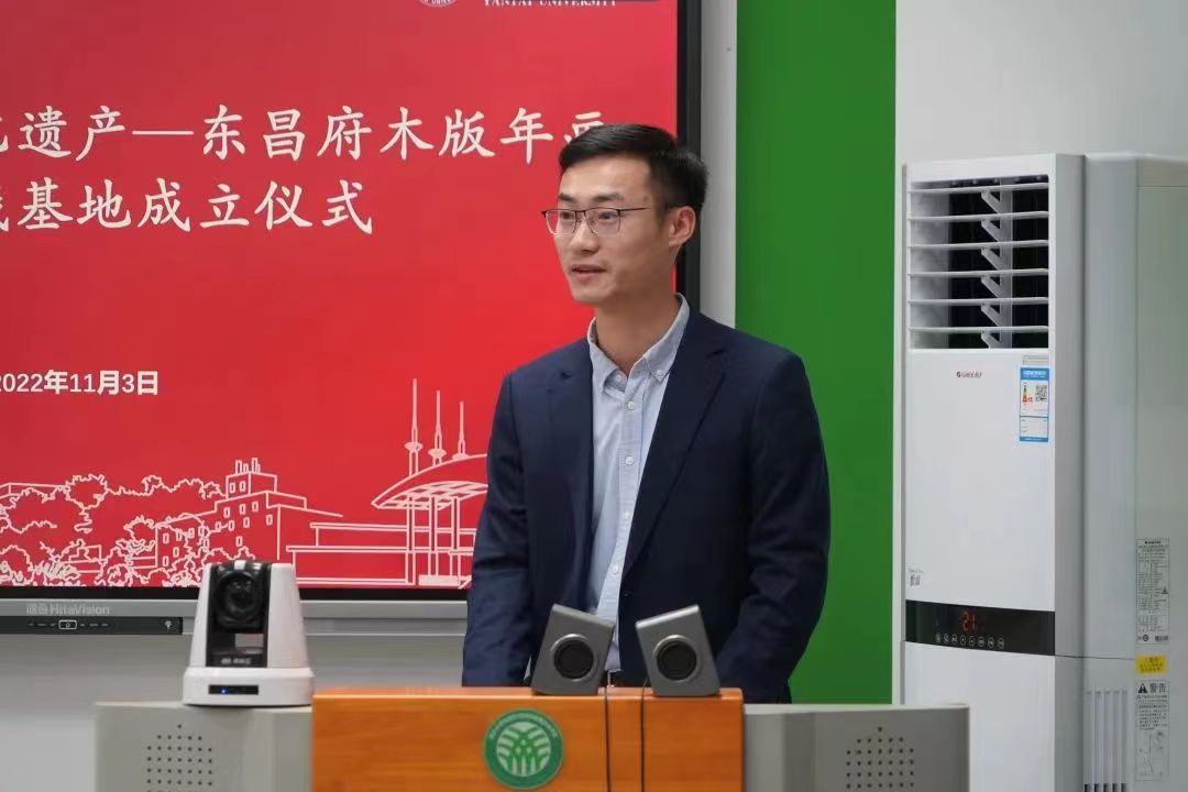 刘超首先对出席本次非遗传承实践基地成立仪式的各方嘉宾表示诚挚的欢迎。他指出,非物质文化遗产是中华优秀传统文化的重要组成部分。校团委将会切实做好示范引领和服务保障工作,支持基地发挥好“第二课堂”的作用,拓展和丰富中华优秀传统文化的教育空间、实践方式和传播范围。