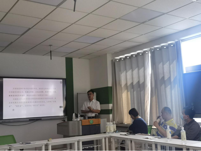 刘修志从新时代意识形态工作的提出出发,以认识意识形态工作的极端重要性为主线,结合总体国家安全观与高校意识形态渗透问题,以具体案例为依据,引导广大教职工要正确抵御和防范西方敌对势力的“西化”和“分化”,不断铸牢中华民族共同体意识。