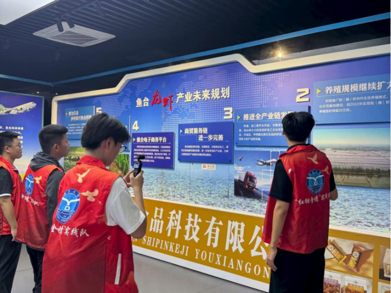 此外,馆内“鱼台龙虾产业未来规划”展板吸引队员驻足。据介绍,当地计划打造集科研、科普、旅游于一体的产业平台,建设模拟实验室、开发研学课程、打造主题观光区,以三产融合推动产业升级,队员们纷纷拍照记录、交流讨论,深入理解产业发展蓝图。