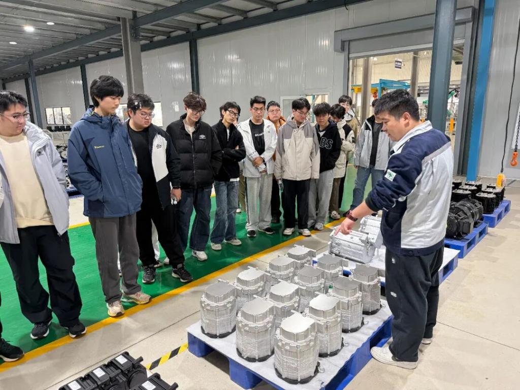 师生在工作人员引导下分四组进入电机零部件生产区、电机装配区、电机测试区、机器人装配区、汽车自动化产线测试区等区域,聆听从零件到整机的完整流程,感受国产机器人成长脉络,为专业分流与职业规划奠定直观坐标。
