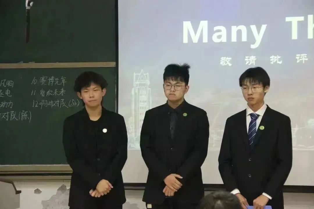 比赛进行时,各队主讲人从项目的选题背景,科技可行性,以及本项目的创新之处等多个方面进行阐述。团队成员们通过实地调查研究得到详实的实验数据,通过精心制作的PPT来展现项目的真实性与可行性。场上激烈的答辩无不体现特里尔优秀学子的科学素养与创新热情。主讲人汇报结束后,评委老师针对各队答辩进行批评指正,提出相应意见,并激励比赛选手在接下来的项目调整中守正创新,踔厉奋发。