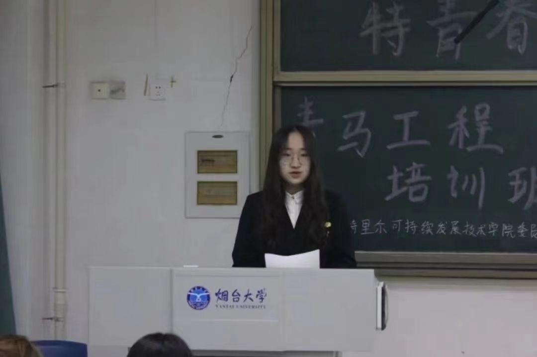 211-2班团支书韩秋天代表红旗团支部向参会人员从支部概况、学风建设、活动展示等方面进行了介绍,并就未来团支部的学习与活动进行了展望,并希望各团支部增强凝聚力建设,展示学生的良好风貌,充分发挥青年典型模范带头作用。