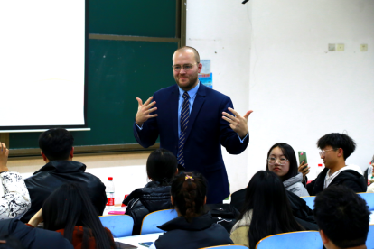 为庆祝中国共产党成立一百周年华诞,传承中国共产党革命精神,弘扬中国共产党红色文化,激发同学们学习外语的热情,营造良好的语言学习氛围。太阳集团网tyc9728于12月10日综合楼207晚6:30举办“青春向党 译览华章”红色经典翻译大赛。出席本次大赛的嘉宾有辅导员方宁、外教Patrick、外国语学院学生团委副书记樊丽莹、口才协会会长孔钦、翻译协会会长刘晓露以及中德特里尔学院团委、学生会、融媒体中心各部门负责人。