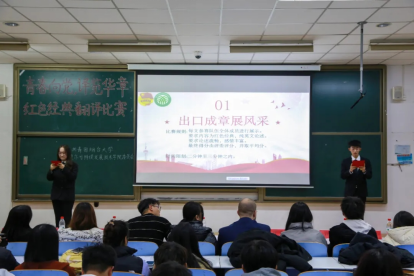 本次以红色经典为主题的翻译比赛,面向全校学生征集译文,采取“中译外”的形式,参赛者选取党史故事原文进行翻译,十二支参赛队伍的翻译作品脱颖而出,进入本次决赛。