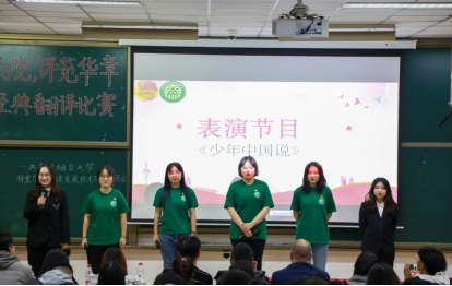 第二项比赛是“去伪存真现真相”,参赛的队伍选手们声情并茂,检验着红色教育以及翻译学习的成果;在这之中还穿插了由中德特里尔学生带来的红歌表演,演唱精彩纷呈,赢得了同学们阵阵掌声。