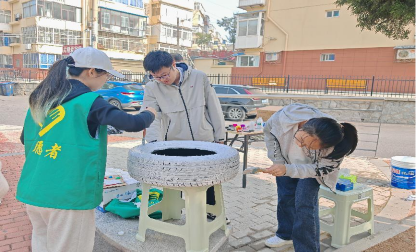本次活动主要分为废旧轮胎改造和废旧矿泉水瓶改造两部分。团支部成员首先进行了小组分工,对废旧轮胎和废旧矿泉水瓶进行改造准备。同时,他们在周边向社区成员进行口头宣传,以吸引更多居民参与,进一步传播绿色零废弃的环保理念,激发大众的环保热情。
