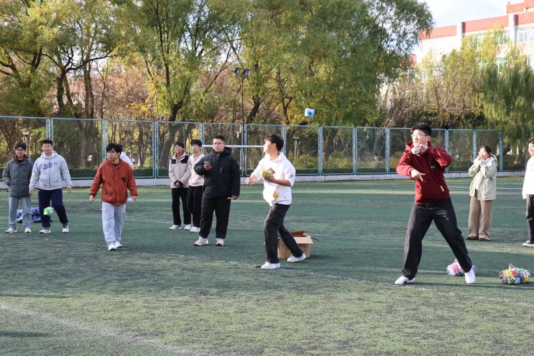 沙包投掷到对面,击打到对方队员为加分项,对方每接一次球就复活一次。同学们或灵活躲避或为增加复活次数而接球,同学们不仅增强了体质,也展示了青春风采。
