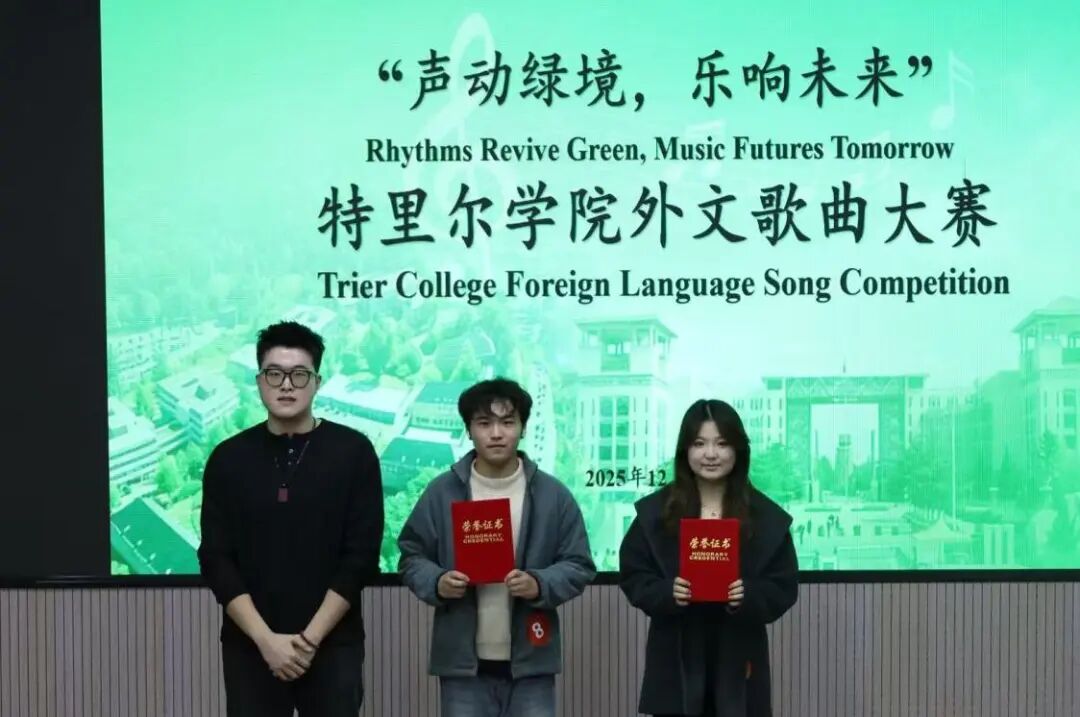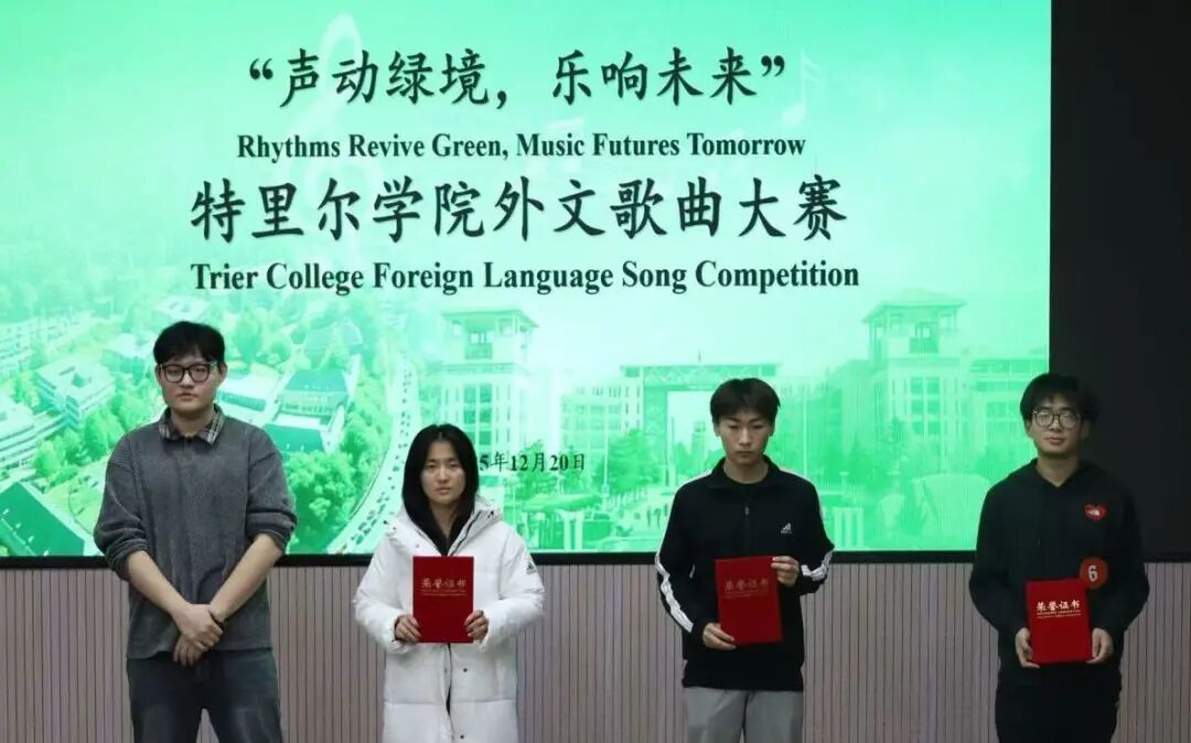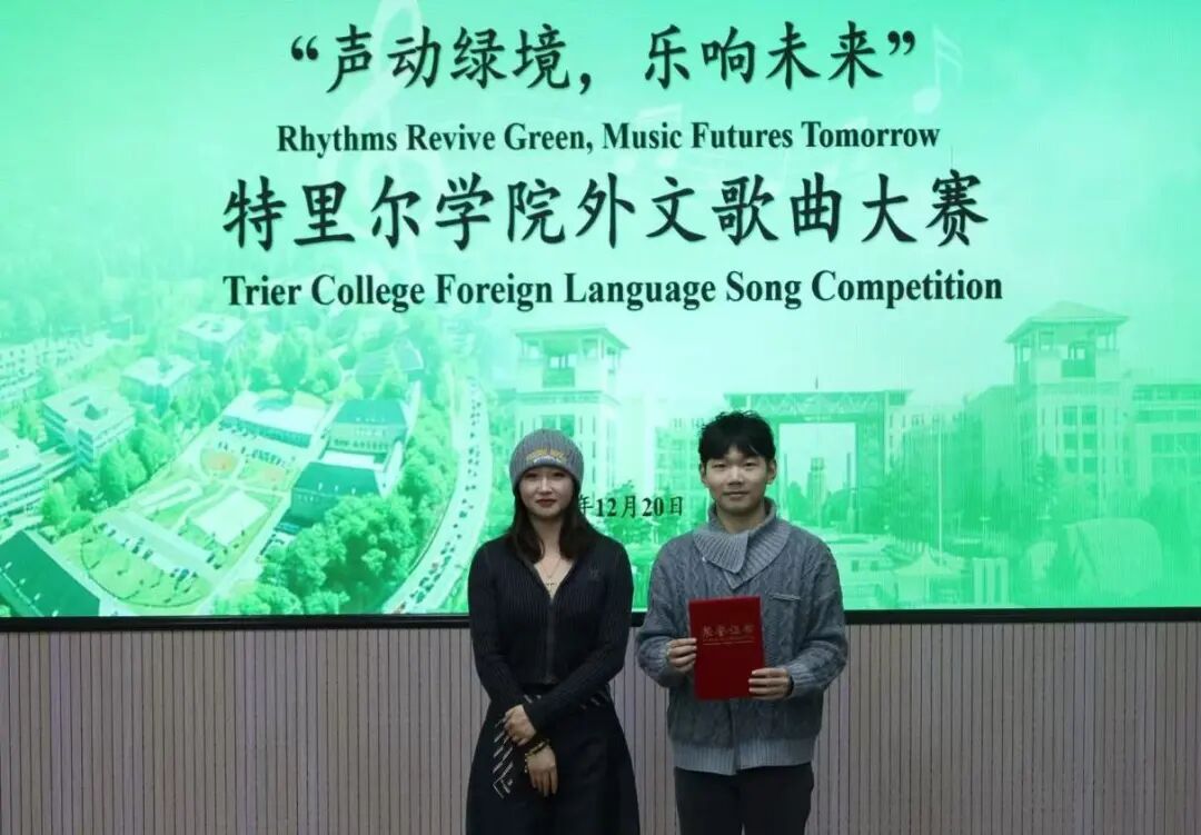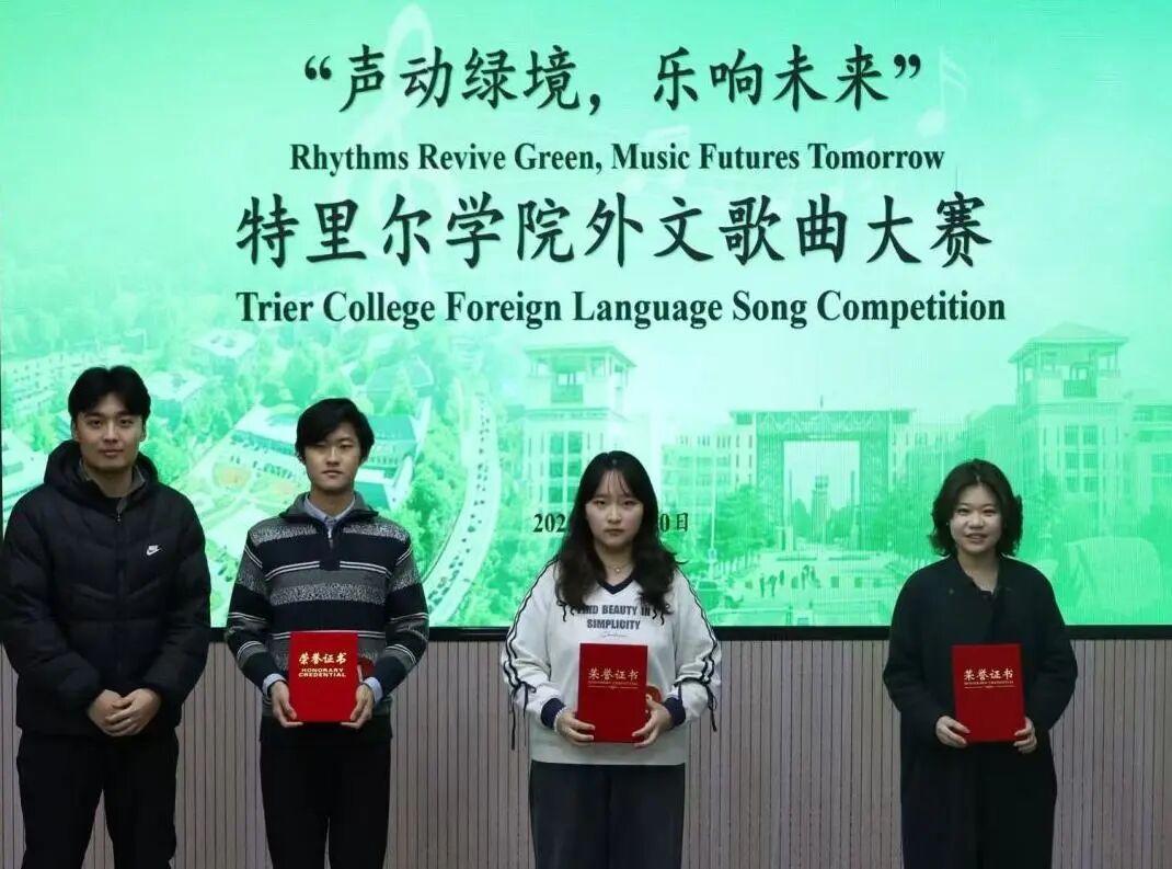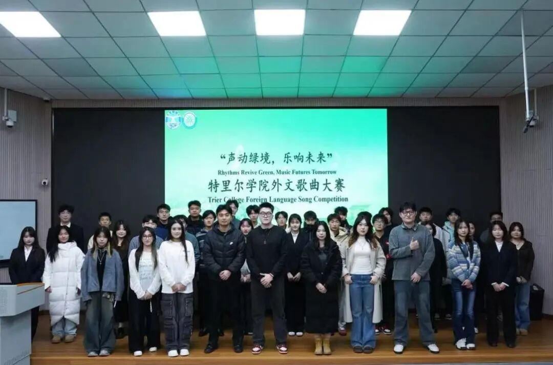 12月20日晚,“声动绿境,乐响未来”中德特里尔学院外文歌曲大赛在第二教学楼101教室圆满举行。比赛邀请到学院雅思团队教师王丹、学生团委副书记魏振宇、学生会主席团成员庄梓翌、文艺部部长张可意、tyc太阳成集团9728第29届校园歌曲大赛二等奖获得者赵夕正、特里尔学院2023年外文歌曲大赛一等奖获得者李鑫玮担任评委,选手们积极参与。