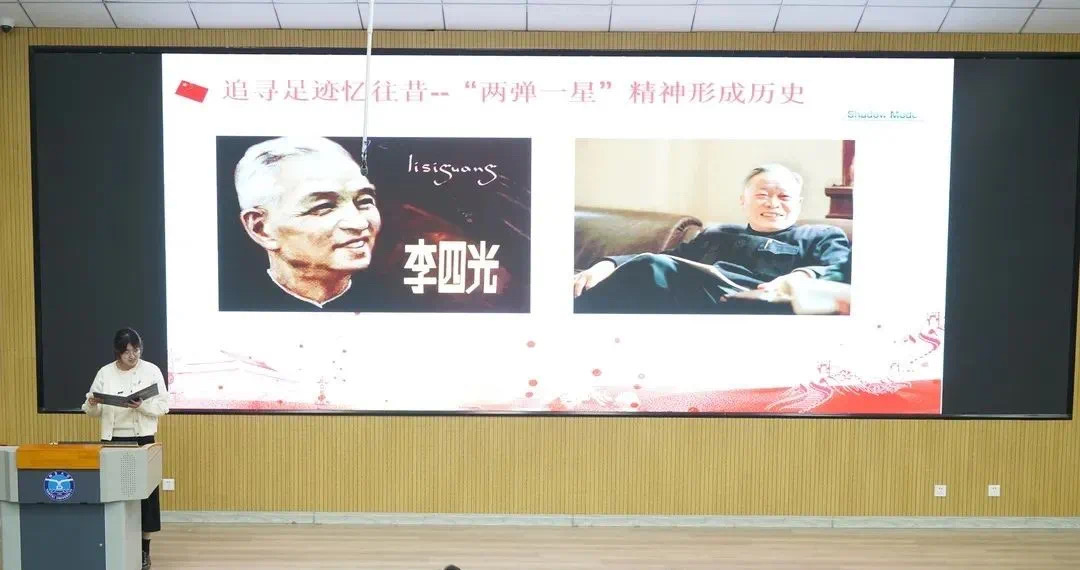 宣讲团成员中德222-1班张文静在《让“两弹一星”精神在新时代熠熠生辉》的宣讲中讲述了两位参与原子弹与氢弹研发的时代大师——钱学森与邓稼先的故事,用鲜活的事例阐释了“两弹一星”精神的科学内涵。她鼓励在场的所有同学们要学习和延续“两弹一星”精神,认真学习科学文化知识、加强科学文化修养,让“两弹一星”精神薪火相传,生生不息。