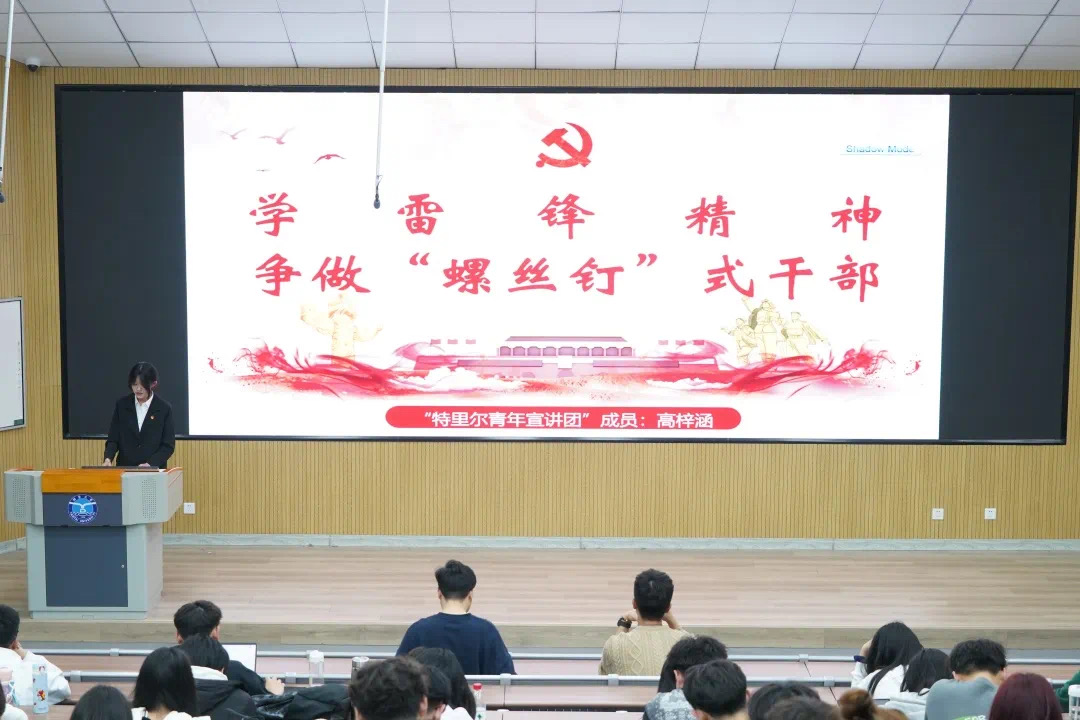宣讲团成员中德212-2班高梓涵以《学雷锋精神,争做“螺丝钉”式干部》为主题进行宣讲,她向同学们介绍了雷锋同志的系列感人事迹,勾勒出无私奉献,热心助人的英雄形象。她表示,当代中国需要更多像雷锋同志一样的“螺丝钉”式人才,希望同学们能认真学习并积极践行雷锋精神,为祖国的建设添砖加瓦。