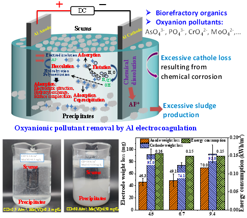 随着经济的快速发展,人们工农业生产和日常生活中使用大量含有(类)金属的物质(如磷、砷、铬、钼等),造成水中此类污染物浓度快速增加,这些污染物在水中呈现出复杂的特性,往往具有形态多样性、有机无机复合性、生物难降解性等特点。此类污染物包括:有机-无机磷、有机-无机砷、As(III)-As(V)、Cr(VI)-Cu(II)、抗生素-重金属络合物等,在日益严格的环境保护要求下,混凝、沉淀、生物等常规水处理技术已难以有效去除上述污染物,给水环境和人体健康造成严重威胁。电絮凝技术是去除此类污染物的有效方法,常用于水与废水深度处理。然而传统电絮凝技术在应用过程中仍存在电极和电能消耗大、污泥产量大等问题,基于节能减污降碳协同增效思路,吕建波教授团队近期在电絮凝技术的电极调控、新型电极开发、反应器和工艺优化组合设计方面进行了一系列的研究,阐明了传统铝电絮凝反应过程中铝电极无谓消耗的根本原因,为工程应用中电絮凝技术的同步除污、降耗和水质毒性削减提供了相关策略,相关成果近期发表在环境领域国际知名期刊《Journal of Hazardous Materials》(中科院I区top,IF13.6)、《Journal of Water Process Engineering》(中科院II区,IF7.0)、《Environmental Science and Pollution Research》(中科院III区,IF5.8)等期刊上,为水中(类)金属和难降解有机污染物的高效去除提供了新思路。tyc太阳成集团9728为发表系列论文的第一作者单位和通讯作者单位。