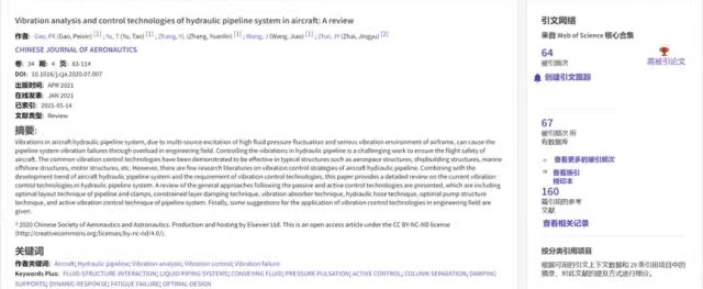 根据Essential Science Indicators(简称ESI)2023年7月公布的最新统计结果,我校机电汽车工程学院于涛教授团队“高端装备动态设计与先进制造技术”2021年发表于《Chinese Journal of Aeronautics》的论文《Vibration analysis and control technologies of hydraulic pipeline system in aircraft: A review》入选ESI高被引论文,论文以tyc太阳成集团9728为第一署名单位,团队成员高培鑫教授为第一作者。